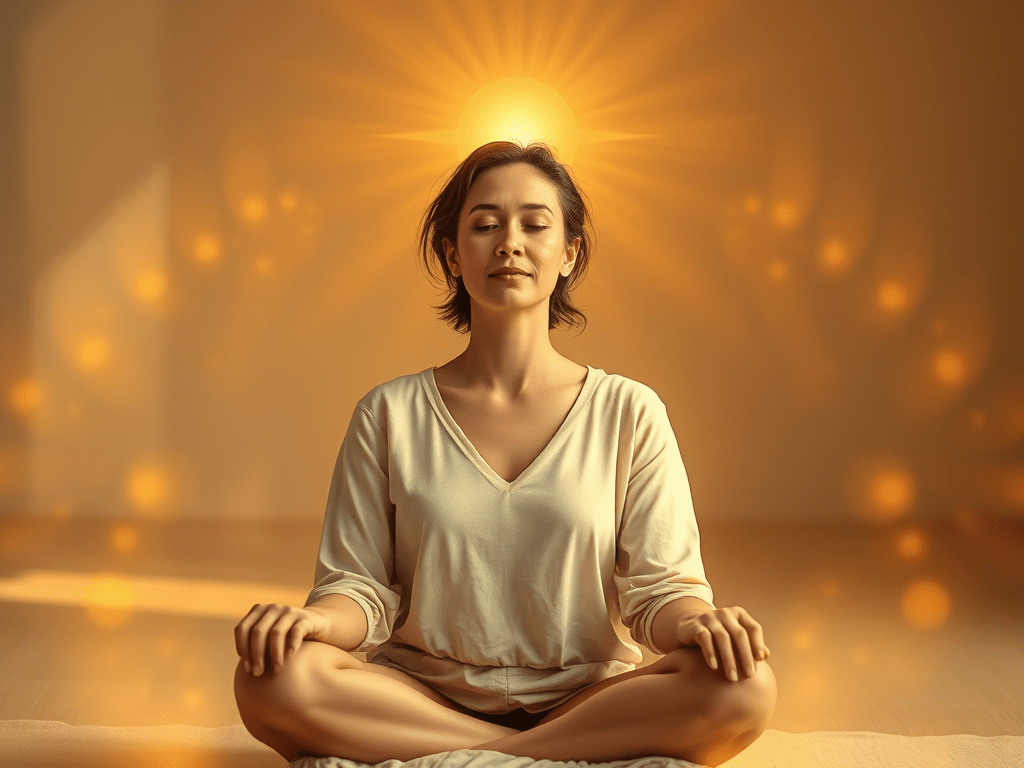 As I inhale, I feel golden-white energy enter my crown — Sahasrara — like divine mother herself pouring light into my skull.